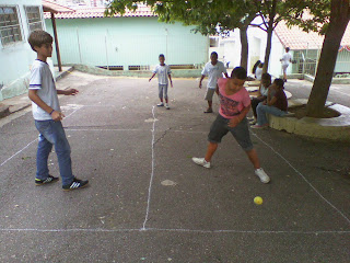 Buscando maior dinamismo e variação nas aulas de Educação Física os alunos do Proeti Vespertino praticaram novos jogos em nossa escola: os jogos com raquetes. Esses jogos foram desde o conhecido Tênis até o menos famoso Badminton e realizados com variações no número de jogadores, espaços e alguns materiais adaptados.